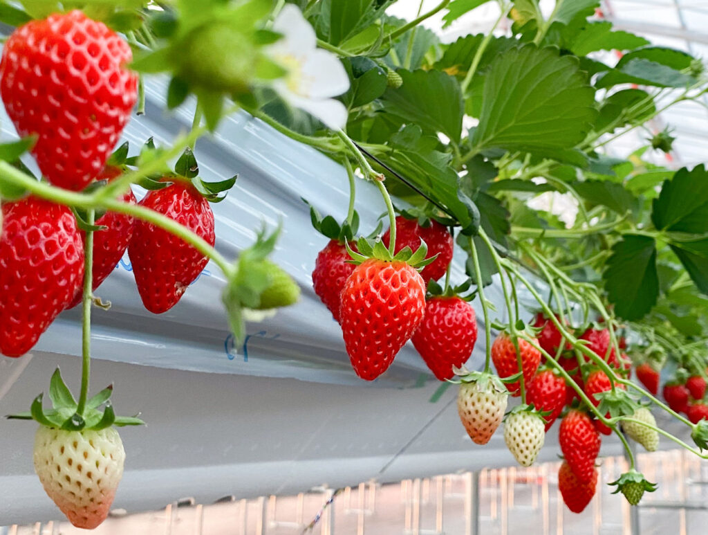 10:00~11:00過ぎ いちご狩りを堪能 各種いちごが食べ放題