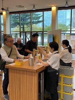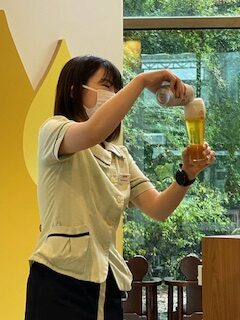 見学の締めくくりのテイスティングコーナー では、1杯1杯心を込めて注いでいただいたキリン一番搾り・キリン一番搾り黒生 ・キリン一番搾りプレミアムの試飲をさせていただきました。試飲の最後に山本様より美味しいビールの注ぎ方を教えていただき終了となりました。