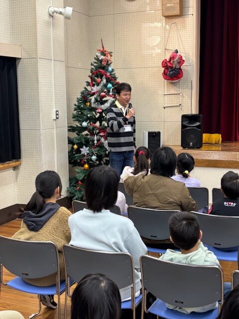 今回は、夏見のおうち子ども食堂さんが普段活動している夏見公民館の田中館長さんが、船橋市の防災・危機管理の担当をされていた当時に近畿大学と深いかかわりを持っておられた・・というご縁もあり、夏見公民館が「共催」(近畿大学校友会千葉県支部後援)という形のイベントにしていただいたおかげで、立派な高座にマイクを用意いただき、さらに広い講堂を前日夕方からお借りすることができて、ゆとりをもって準備することができました。最後の挨拶でも田中館長から近畿大学を大いに宣伝いただき、大変ありがたいお話しをいただきました。